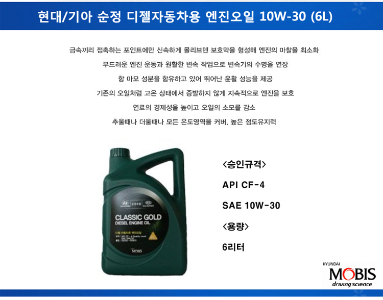 [모비스] Classic Gold 엔진오일(디젤용) 6Lx3EA API CF-4 [05200-00610] 10W30SOLDOUT